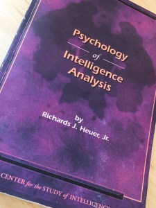I honestly did not actually intend to post fiction reviews for weeks at a time, but this is where we ended up. So, to break up that streak (and also prove I do actually read things for work), here we have The Psychology of Intelligence Analysis by Richards (that is the correct spelling, don’t @ me) Heuer, a former CIA analyst (this was a publication by the CIA Center for the Study of Intelligence).